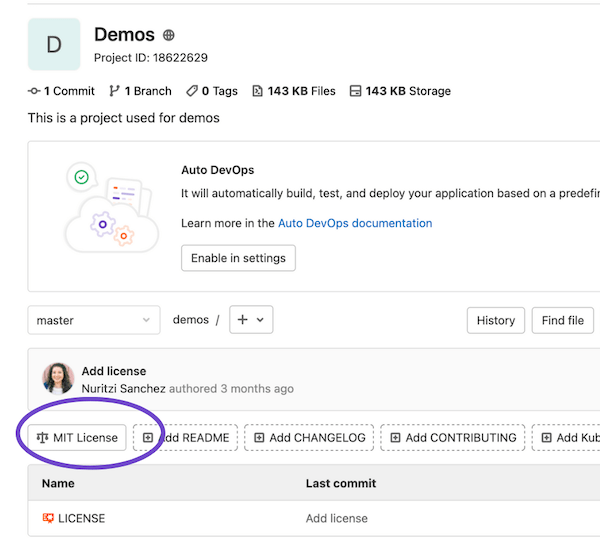 On the left sidebar, select Project information > Details. Take a screenshot that includes a view of the license you've chosen for your project.