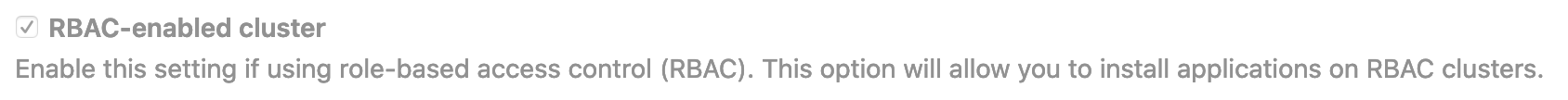 When connecting a cluster via GitLab integration, you may specify whether the cluster is RBAC-enabled or not. This affects how GitLab interacts with the cluster for certain operations. If you did not check the RBAC-enabled cluster checkbox at creation time, GitLab assumes RBAC is disabled for your cluster when interacting with it. If so, you must disable RBAC on your cluster for the integration to work properly.